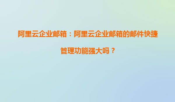 随着信息化时代的不断发展,企业间的沟通愈发依赖于电子邮件这一高效、便捷的工具。阿里云企业邮箱作为阿里云推出的一款企业级邮件服务,凭借其强大的邮件管理功能,已经成为众多企业首选的邮件解决方案。在这篇文章中,我们将重点探讨阿里云企业邮箱的邮件快捷管理功能及其优势,帮助用户更好地了解它的强大之处。