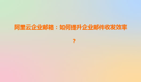 阿里云企业邮箱:如何提升企业邮件收发效率?