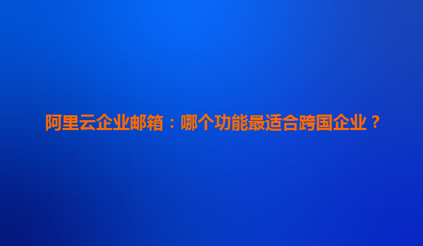 在全球化经济的大背景下,跨国企业面临着沟通协作的巨大挑战。阿里云企业邮箱以其强大的功能和卓越的性能,成为跨国企业的理想选择。本文将详细介绍阿里云企业邮箱的主要优势,并探讨其为跨国企业带来的具体益处。
