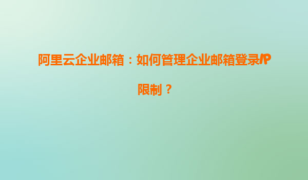 在当今的商业环境中,电子邮件已成为企业沟通不可或缺的工具。阿里云企业邮箱作为市场上的主要服务之一,提供了高效、安全的电子邮件解决方案,帮助企业提升工作效率和信息安全。本文将详细介绍如何管理阿里云企业邮箱的登录IP限制,同时突出其在企业邮箱服务中的优势。