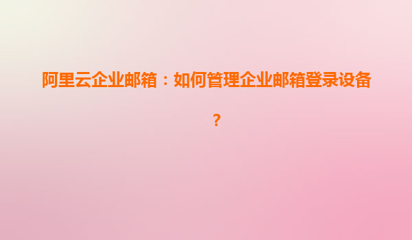 阿里云企业邮箱:如何管理企业邮箱登录设备
