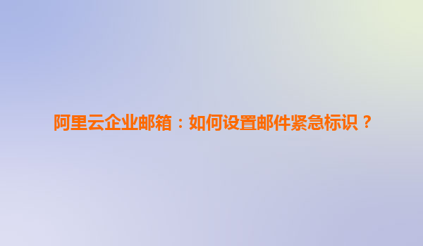 在现代商业环境中,电子邮件已经成为企业沟通的重要工具。阿里云企业邮箱作为一款专业的企业级邮件服务,提供了丰富的功能来满足企业用户的需求。其中,设置邮件紧急标识是一个非常实用的功能,能够帮助用户在众多邮件中快速识别和处理重要信息。