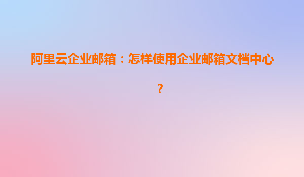阿里云企业邮箱:怎样使用企业邮箱文档中心?