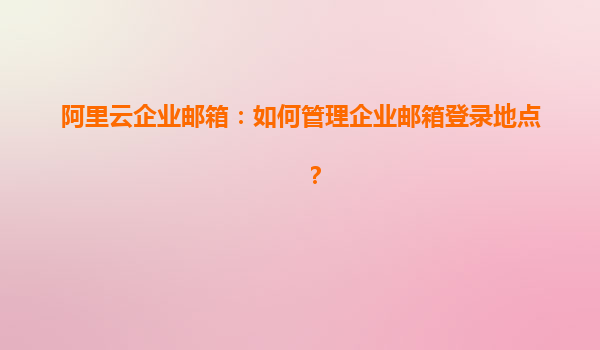管理企业邮箱的登录地点是确保企业信息安全的重要措施之一。阿里云企业邮箱提供了灵活的登录地点管理功能,帮助企业管理员监控和限制员工的邮箱访问。