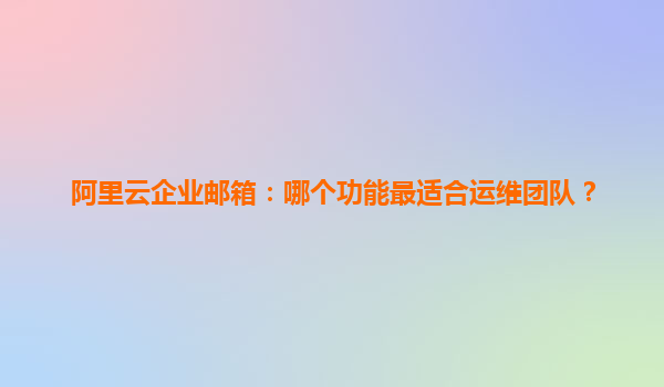 在现代企业中,运维团队需要高效、安全的沟通工具来支持他们的日常工作。阿里云企业邮箱凭借其强大的功能和可靠性,成为了许多企业的首选。本文将探讨阿里云企业邮箱的优势,并分析其最适合运维团队的功能。