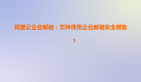 阿里云企业邮箱:怎样使用企业邮箱安全报告?
