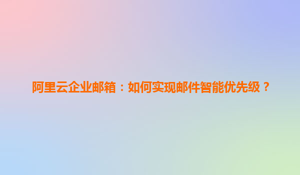 在现代商业环境中,电子邮件已经成为企业沟通的主要工具之一。随着邮件数量的增加,如何有效管理和优先处理邮件成为企业面临的重要挑战。阿里云企业邮箱提供了一种解决方案,通过智能优先级功能帮助用户更高效地管理邮件。