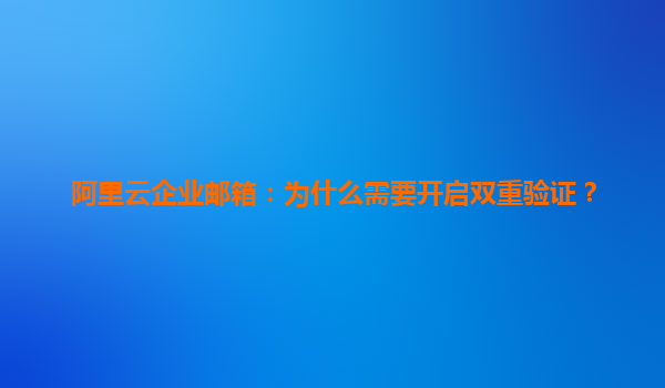 在当今数字化的办公环境中,企业邮件作为重要的沟通工具,肩负着不可或缺的责任。为了确保企业信息的安全性,阿里云企业邮箱推出了双重验证功能。这项功能的开启,不仅能够为企业邮箱账户增加一道防线,还能有效防止外部恶意攻击,保障企业的业务运营安全。