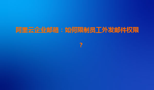 阿里云企业邮箱为企业提供了多种方式来限制员工外发邮件权限,具体方法如下:
