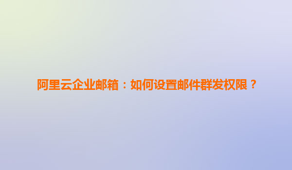 如何在阿里云企业邮箱中设置邮件群发权限