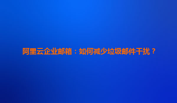 如何利用阿里云企业邮箱减少垃圾邮件干扰