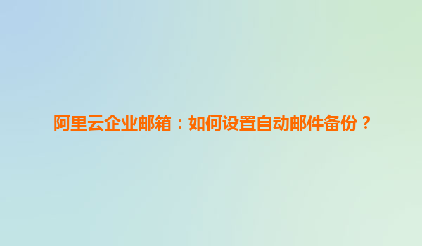 二、如何设置阿里云企业邮箱的自动邮件备份