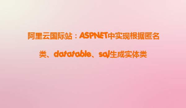 阿里云国际站:ASPNET中实现根据匿名类、DataTable、SQL生成实体类