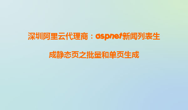深圳阿里云代理商:ASP.NET新闻列表生成静态页之批量和单页生成