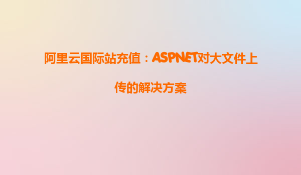 阿里云国际站充值:ASPNET对大文件上传的解决方案