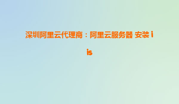 深圳阿里云代理商:阿里云服务器 安装 IIS