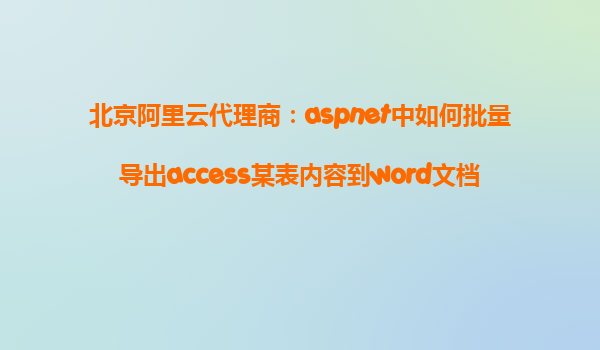 在很多应用场景中,我们可能需要将数据库中的数据导出到Word文档中,特别是在生成报告、统计数据和保存数据记录时。在ASP.NET中,结合Access数据库的使用,我们可以通过几种方式将表中的内容导出到Word文档。本文将详细介绍如何在ASP.NET应用程序中批量导出Access数据库某个表的内容到Word文档,并结合阿里云和阿里云代理商的优势,阐述这种解决方案的实施过程。