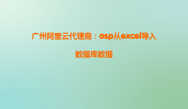 广州阿里云代理商:ASP从Excel导入数据库数据