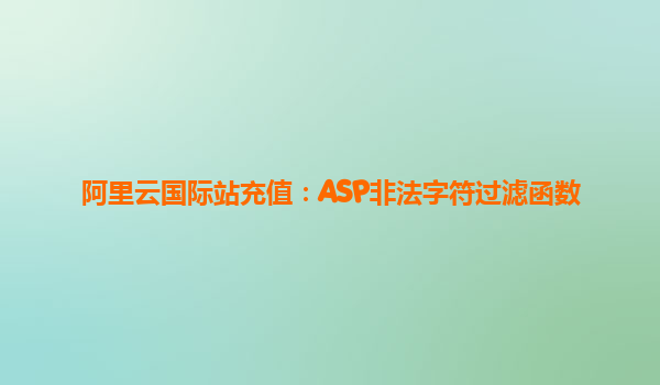 阿里云国际站充值:ASP非法字符过滤函数的应用与优势