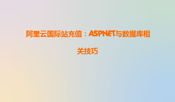 阿里云国际站充值:ASP.NET与数据库相关技巧