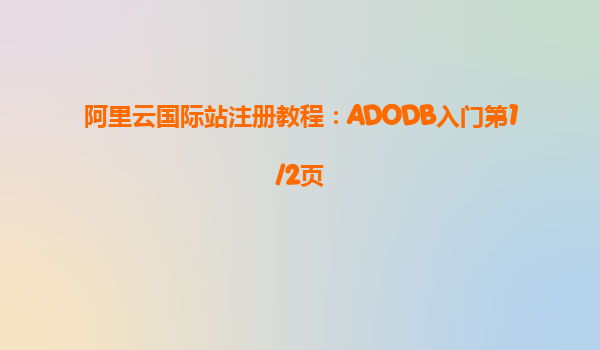 阿里云国际站注册教程:ADODB入门与阿里云的优势