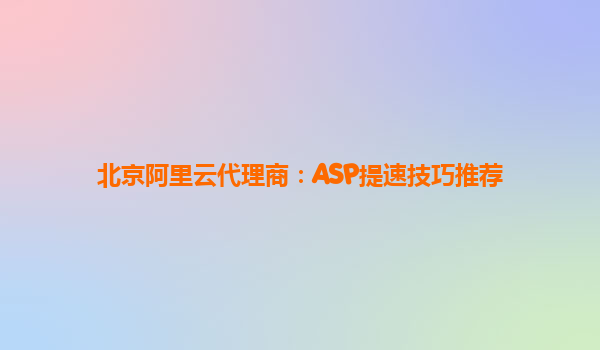 北京阿里云代理商:ASP提速技巧推荐