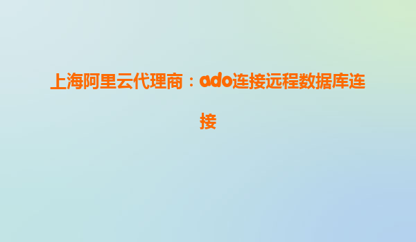 使用上海阿里云代理商ADO连接远程数据库的优势与实践