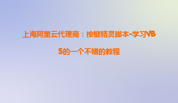 上海阿里云代理商:按键精灵脚本-学习VBS的一个不错的教程