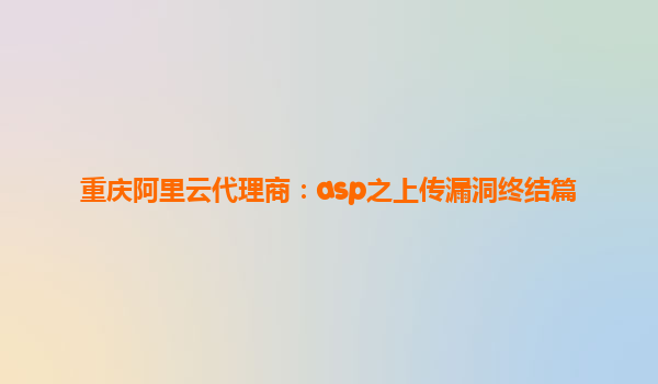 重庆阿里云代理商:ASP之上传漏洞终结篇