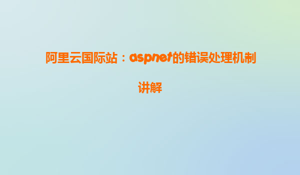 阿里云国际站:ASP.NET的错误处理机制讲解