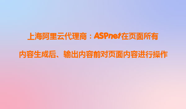 上海阿里云代理商:ASPnet在页面所有内容生成后、输出内容前对页面内容进行操作