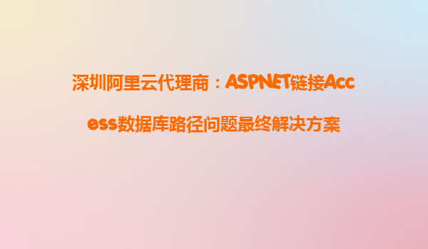 深圳阿里云代理商:ASPNET链接Access数据库路径问题最终解决方案