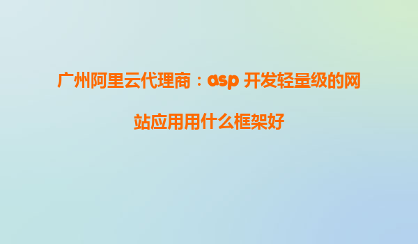 广州阿里云代理商推荐:ASP开发轻量级网站应用的框架选择