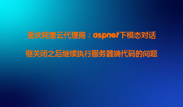 重庆阿里云代理商:ASP.NET下模态对话框关闭之后继续执行服务器端代码的问题分析