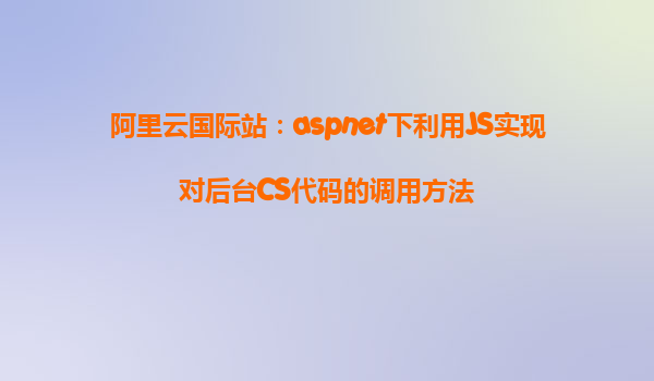 阿里云国际站与ASP.NET结合JS调用后台CS代码的优势