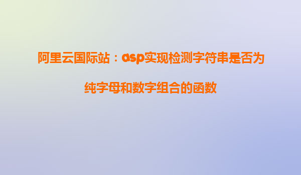 使用ASP实现检测字符串是否为纯字母和数字组合的函数