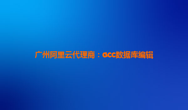 广州阿里云代理商:ACC数据库编辑的优势与应用