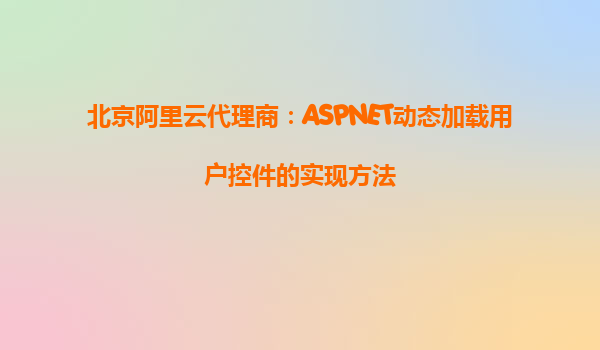 北京阿里云代理商:ASPNET动态加载用户控件的实现方法