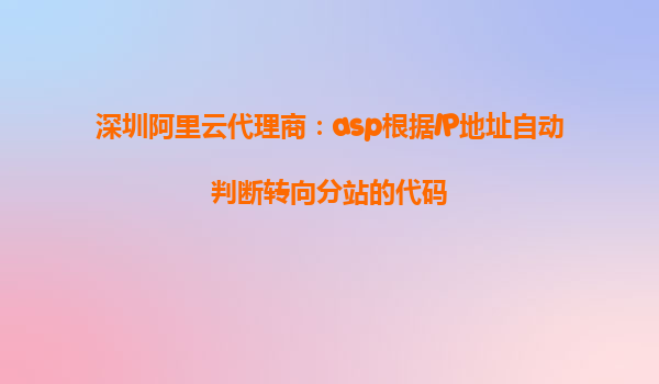 深圳阿里云代理商:ASP根据IP地址自动判断转向分站的代码