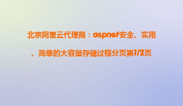 北京阿里云代理商:ASP.NET安全、实用、简单的大容量存储过程分页