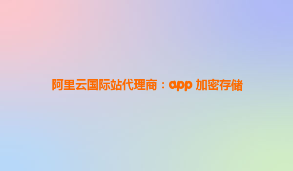 阿里云国际站代理商:APP加密存储解决方案