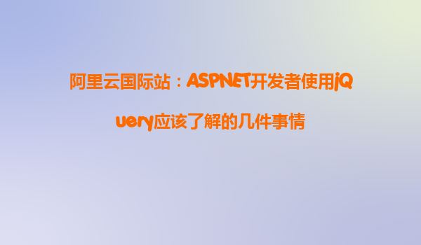 阿里云国际站:ASP.NET开发者使用jQuery应该了解的几件事情
