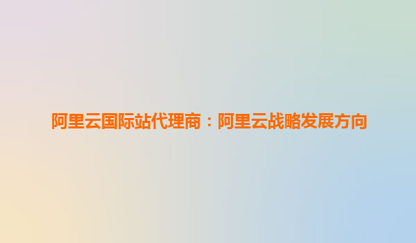阿里云国际站代理商:阿里云战略发展方向