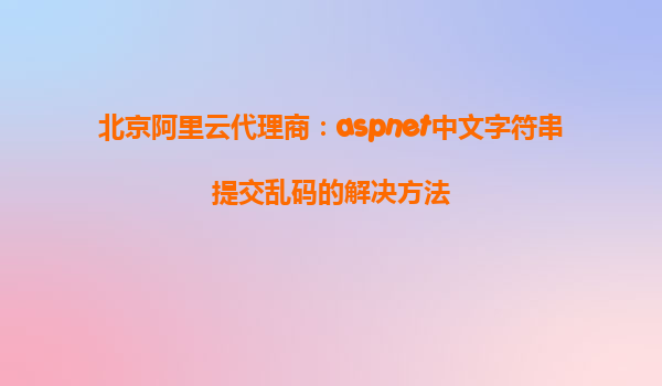 北京阿里云代理商:ASP.NET中文字符串提交乱码的解决方法