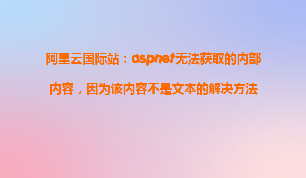 阿里云国际站:ASP.NET无法获取的内部内容,因为该内容不是文本的解决方法