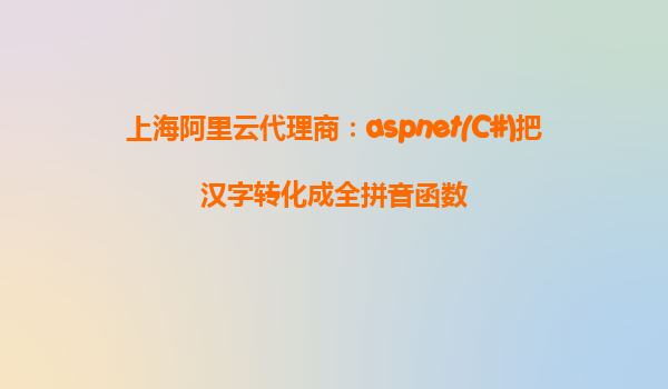 上海阿里云代理商:ASP.NET (C#) 汉字转化成全拼音函数