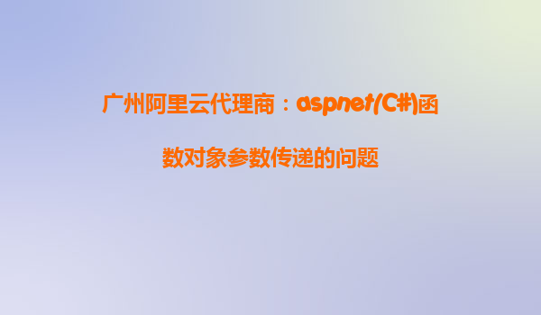 广州阿里云代理商:ASP.NET(C#)函数对象参数传递的问题