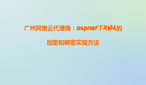 广州阿里云代理商:ASP.NET下XML的加密和解密实现方法