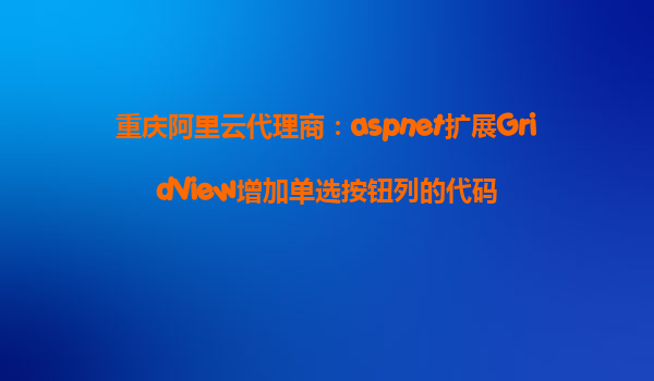 在一些业务需求中,我们需要在GridView中增加单选按钮(RadioButton),以便用户能够在多个选项中选择一个。为了实现这个功能,我们可以通过扩展GridView控件来增加一个单选按钮列。在本文中,我们将介绍如何通过ASP.NET扩展GridView,添加单选按钮列,并结合阿里云和阿里云代理商的优势来讨论如何提升网站性能和用户体验。