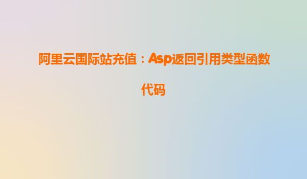 随着云计算技术的快速发展,越来越多的企业和开发者开始选择使用云服务来满足自己的技术需求。阿里云作为全球领先的云计算服务提供商,其广泛的服务、卓越的技术支持以及全球覆盖的网络基础设施,吸引了大量用户。然而,对于开发者而言,如何通过程序实现阿里云国际站的充值操作,是一个非常实际的问题。本文将详细介绍如何使用ASP返回引用类型函数代码,实现阿里云国际站充值操作,同时结合阿里云及阿里云代理商的优势,帮助大家更好地理解这一过程。